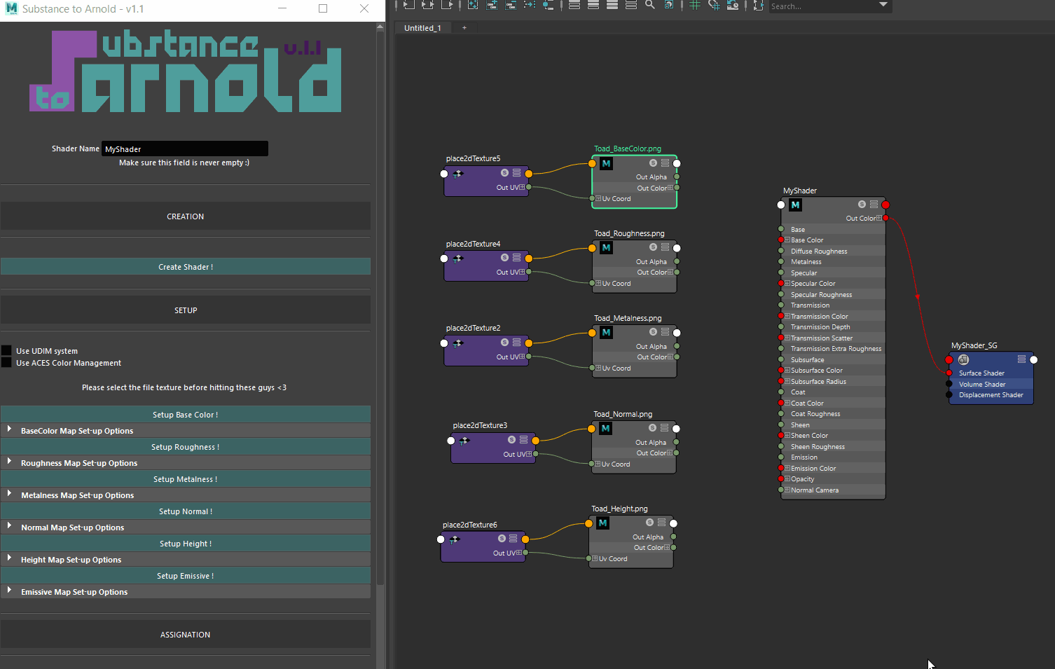It is made to fit with Substance Painter exported textures. So.. If you waste your time setting up your Arnold shaders, take a look on my script :)